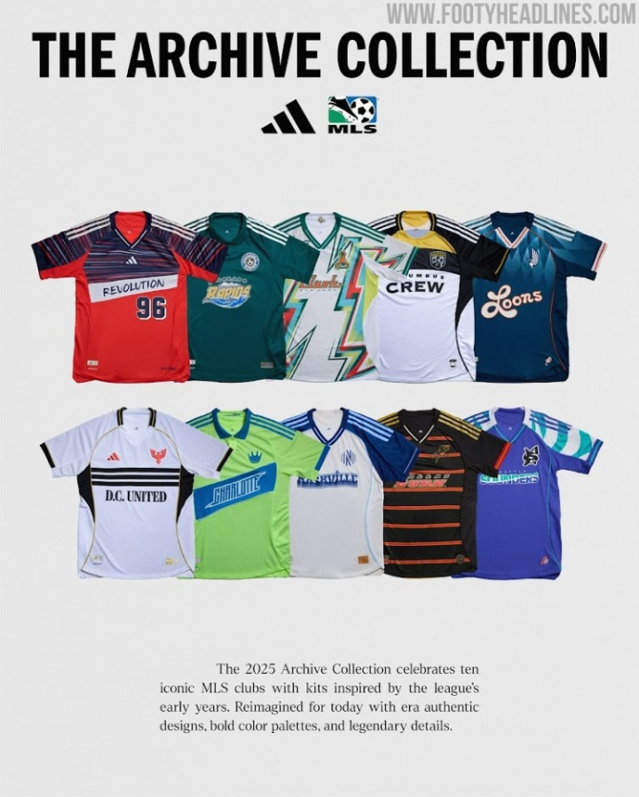直播吧7月17日讯著名足球装备网站FootyHeadlines报道,阿迪达斯与美国职业足球大联盟携手推出2025阿迪达斯×MLS怀旧系列,重现MLS早期历史风貌。该系列从90年代末至2000年代初的足球设计黄金时代汲取灵感,为十支MLS俱乐部打造复古主题的第三客场球衣。